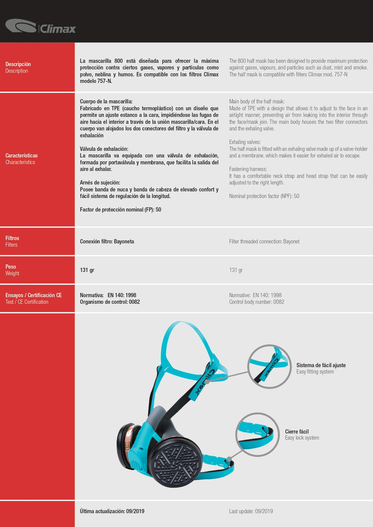 Mascara Medio Rostro Reusable con Filtro p/ Gases & Vap. Orgánicos