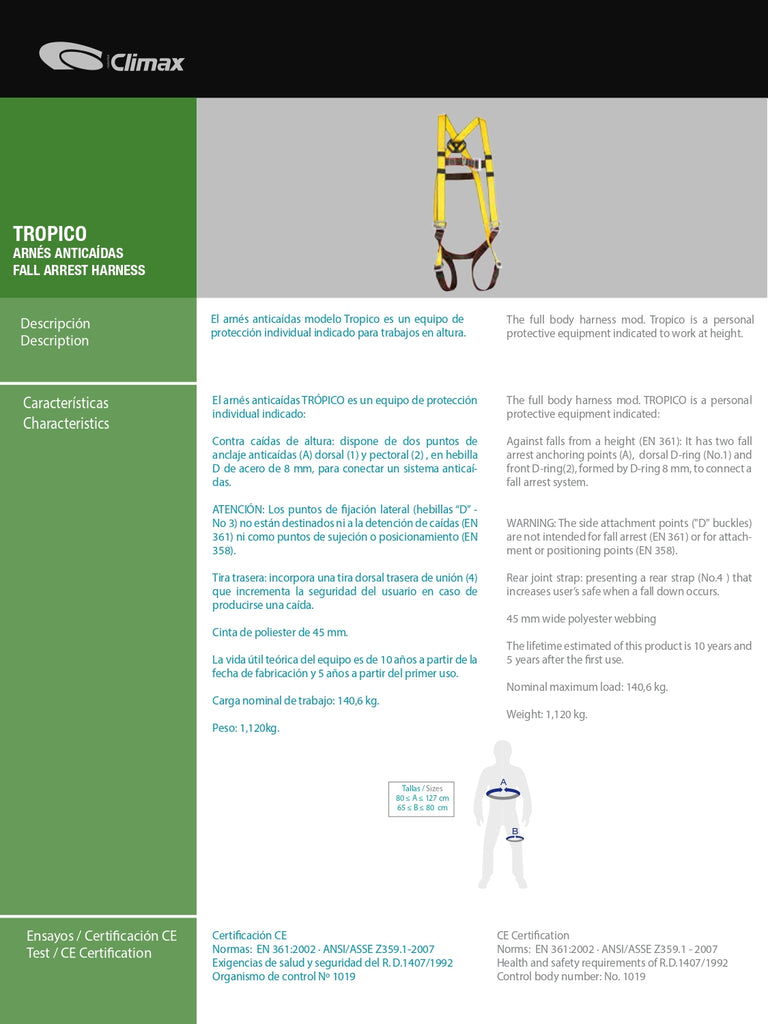 TROPICO - Arnés de Seguridad Anticaídas